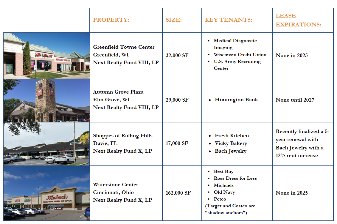 As a result, Next Realty is capitalizing on the strong retail real estate market, with several properties at or near 100% leased.